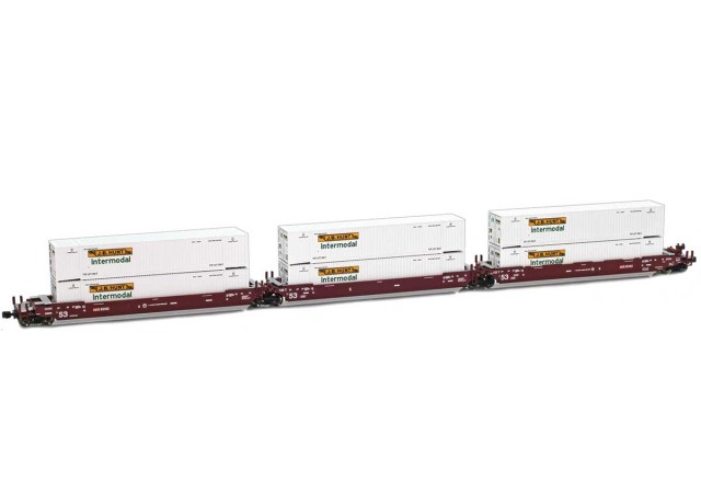 The cars are articulated and ride on modified AZL 90001 roller-bearing trucks. These trucks swing quite freely. A railing ramp is suggested for placing the cars on the track. A minimum of curve of 195mm and above is recommended.Each set will come with six containers. The 53' containers are the first time AZL has offered corrugated type containers in this length. The 40' containers are a re-release with new tooling as well. AZL plans to offer a mix of containers from discount stores, online stores, overnight delivery services, shipping companies, moving companies and railroads.