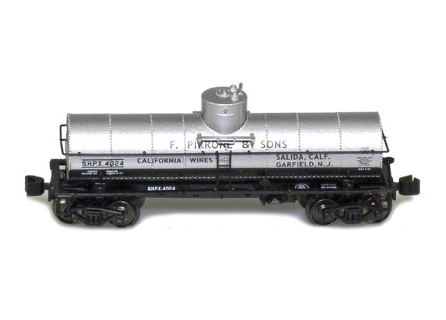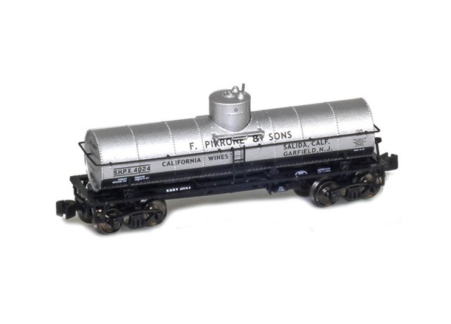 General American tank car company introduced these cars in 1917. Designed for bulk liquid shippers, the cars were non-insulated. These cars carried a wide range of products from oil to foods. The cars feature blackened metal wheels, add-on parts, fine pad printing, Bettendorf trucks and AZL’s AutoLatch™ couplers.AZL 915011-1 Pirrone 8000 Gallon Tank Car | SHPX 4024