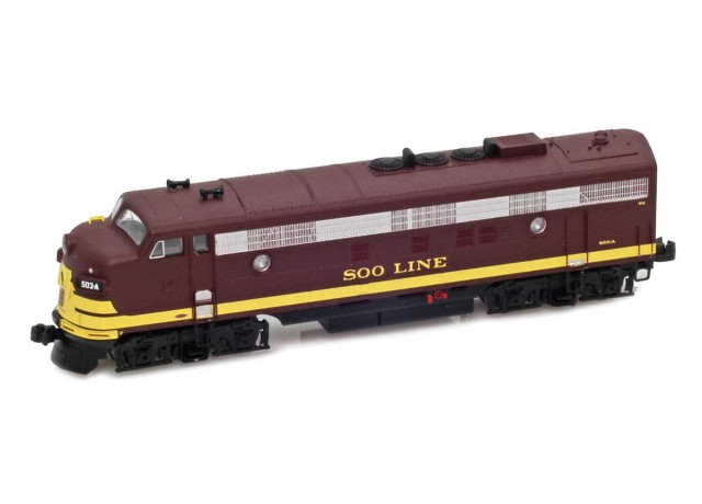 The EMD FP7s feature AZL’s 7mm motor, dual flywheels, prototype specific details, metal stirrups, directional controlled LED lighting, optional front truck with mounted coupler, blackened metal wheels, AutoLatch couplers and they come DCC ready.