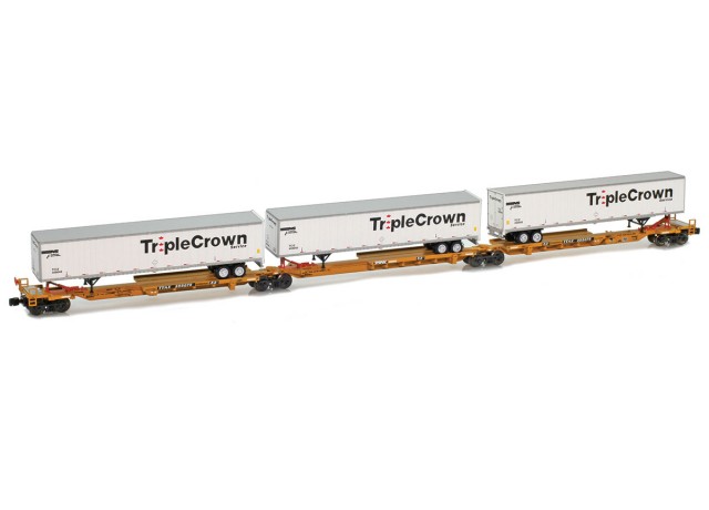 The cars are metal with both etched metal and plastic add-on details. The cars are articulated and ride on modified AZL 90001 roller-bearing trucks. They are lettered for TTAX (old logo).
