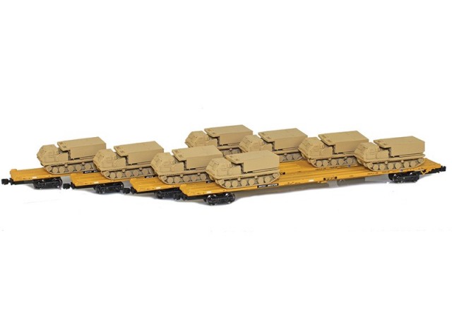AZL 901510-5SB RTTX 89' Flat Cars w/ Z-Panzer (8) M270 Loads | Sand | 4-Car Set