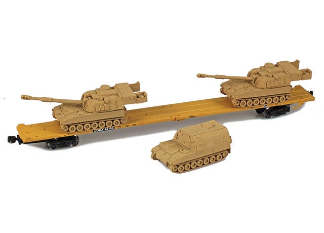 AZL 911024-5S DODX 89' Flat Car w/ Z-Panzer (2) M109 / (1) M992 Loads | Sand #42100